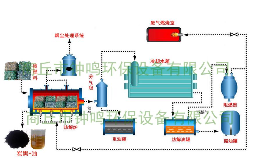 為了解決廢塑料,本廠生產的裂解設備,能確保無三廢排放。設備有尾氣燃燒再利用裝置,確保無味。以燃料裂解塑料油為例(也可以天然氣),設備配有除塵器,煙塵達標排放,整個循環冷卻系統水循環且無污染,絕無廢水排放;廢渣因經過500多度的高溫處理,無任何的毒性碳黑,燃氣是廢塑料熱解的能量來源,油品為廢塑料熱解的主要產品,而從產品的品質和價值講,裂解設備很好的解決了垃圾污染問題,不會造次二次污染。在解決問題的同時也創造了巨大的經濟效益。