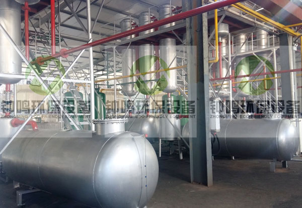 第2步: 加熱 ---- 可使用塑料油或不凝氣對反應釜進行均勻加熱,加熱約2小時左右溫度逐步升至200度左右裂解油氣通過反應釜中心的出油氣口進入冷卻系統液化成油進入中間油罐。